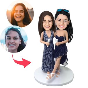 Celebrate love and friendship with our handmade Same-sex Lady Couple Custom Bobblehead. This charming and unique figurine is the perfect way to immortalise a special couple in a fun, personalised keepsake. Each bobblehead is carefully crafted from high-quality polymer clay, featuring customised heads based on your photos and an engraved text of your choice, making it a truly one-of-a-kind gift.