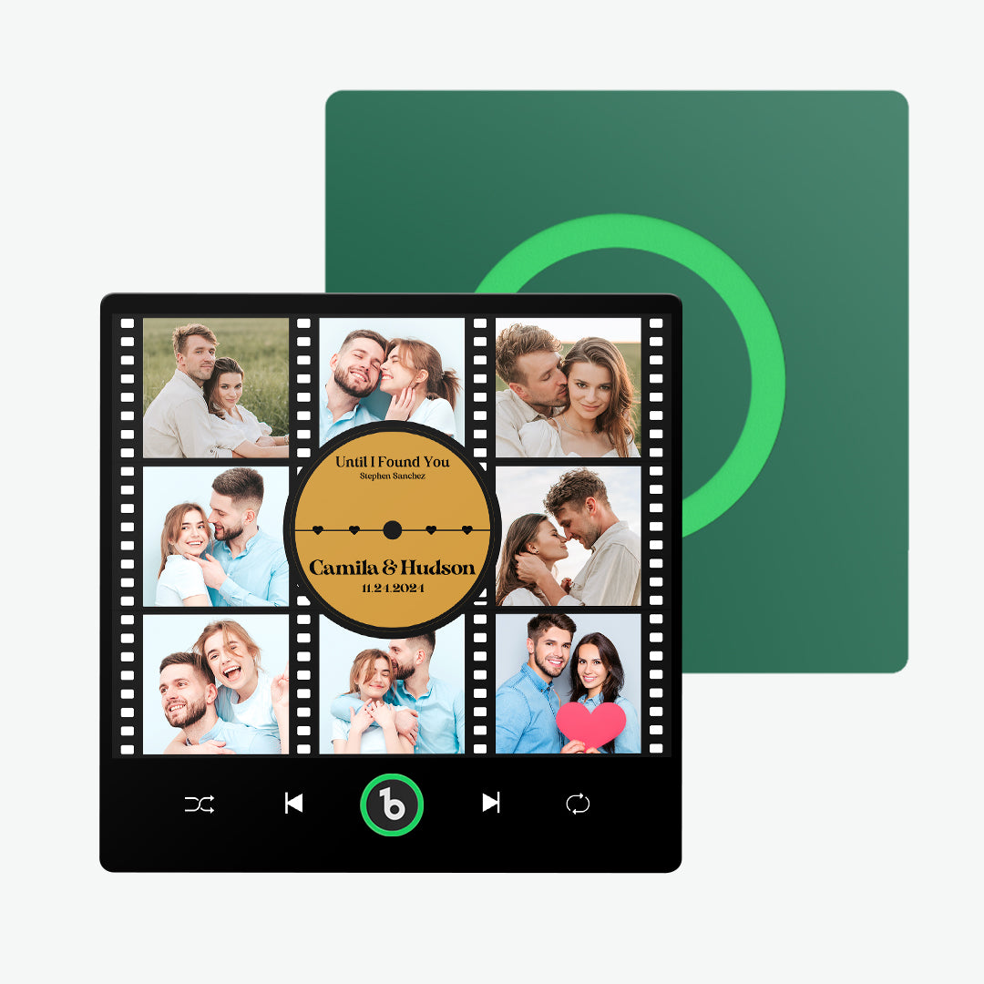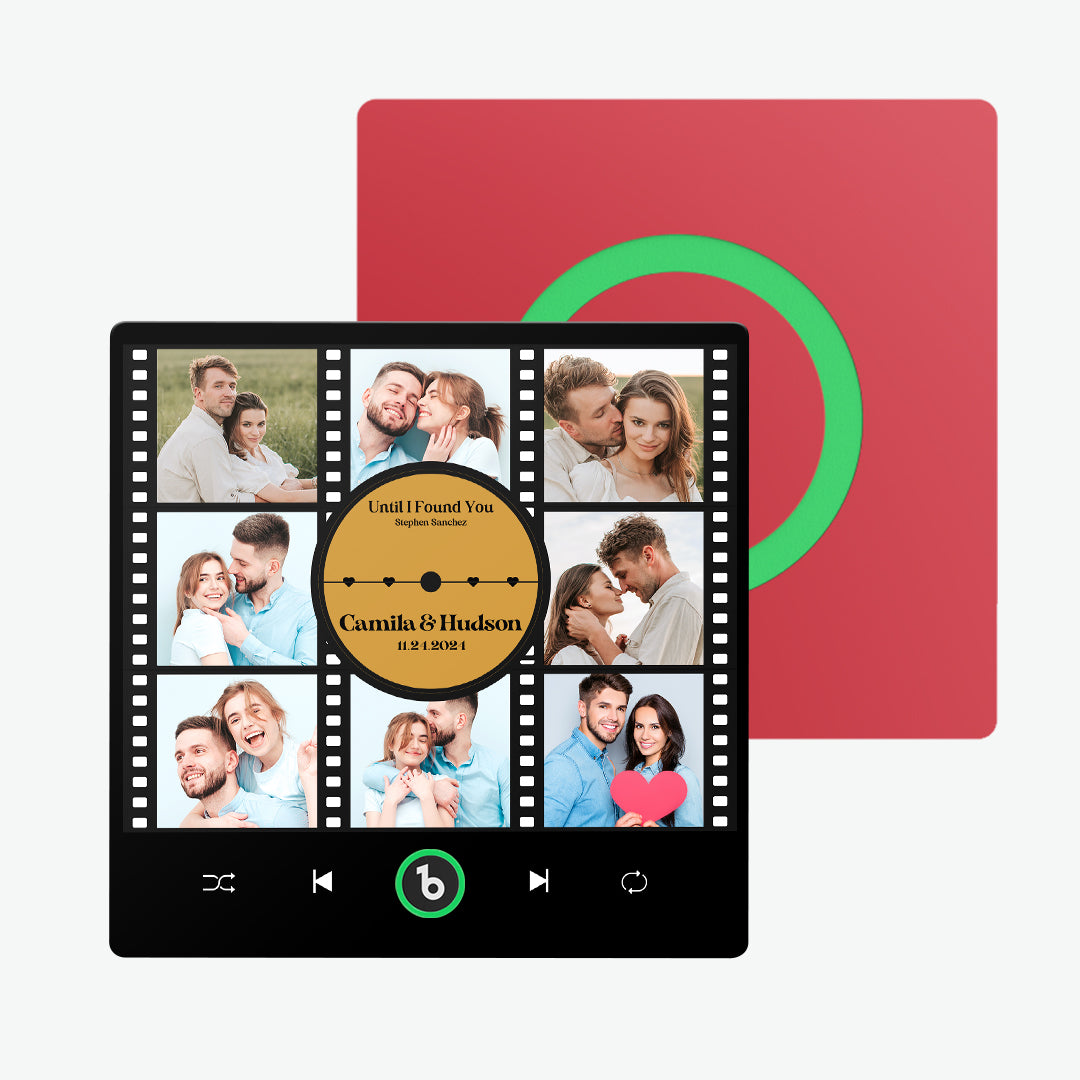 As the only customisable music refrigerator magnet on the market, each piece is uniquely yours. Choose any high-resolution photo and select a romantic love song or favourite melody that tells your story. Every time the magnet plays, it reinforces your special connection.
