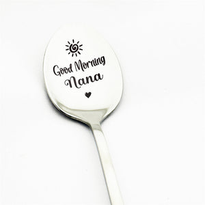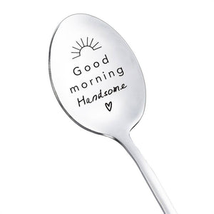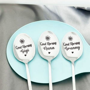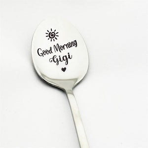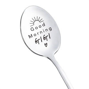 Personalised 'Good Morning' Stainless Steel Coffee Spoon - Engraved Gift for Tea & Coffee Lovers