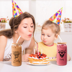 Custom Highland Cow Tumbler with Name Clear Can Glass Gift for Highland Cow Lovers