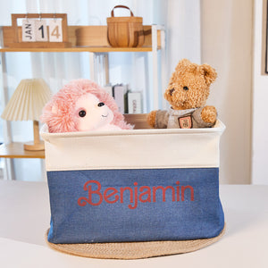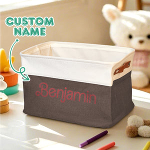 Personalised Linen Storage Basket with Name - Custom Toy Organiser Bin for Children