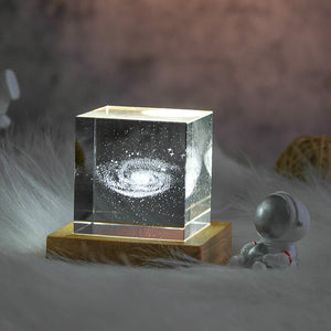 3D Moon Crystal Cube with LED Base | Personalised Night Light Gift