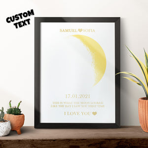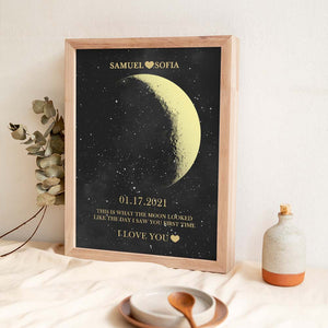 Commemorate life's extraordinary moments with our Custom Moon Phase Gold Print Frame. This exquisite piece immortalises the exact lunar phase from any special night – be it your first meeting, wedding day, or a loved one's birth – transforming it into a timeless keepsake.