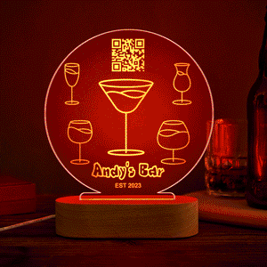 Personalised QR Code Wine Glass Night Light - 7 Colour Acrylic 3D Lamp | Custom Father's Day Gift UK Australia