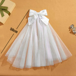 Our exquisite personalised bridal veil bow clip is crafted to add that perfect finishing touch to your wedding ensemble. Made from high-quality polyester, this elegant accessory measures 19.7 inches (50cm) in length, ensuring it complements various veil styles beautifully.
