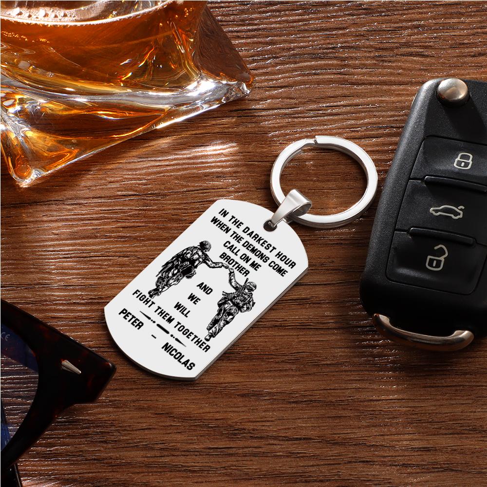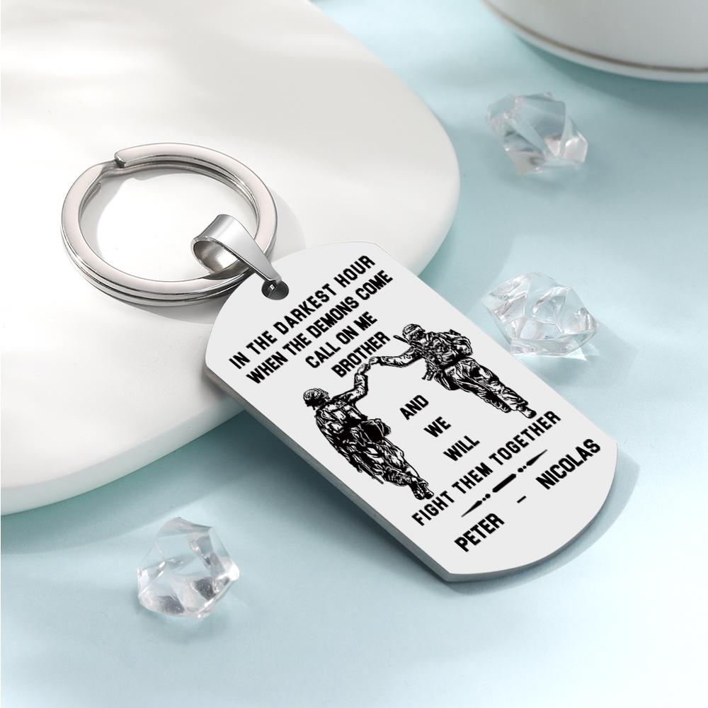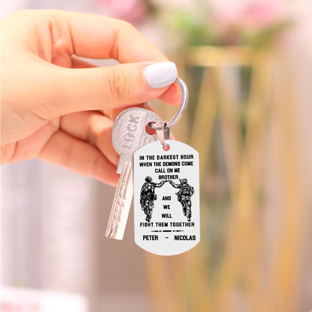 Call On Me Brother Engraved Tag Keychains In The Darkest Hour Gift For Brothers & Friends