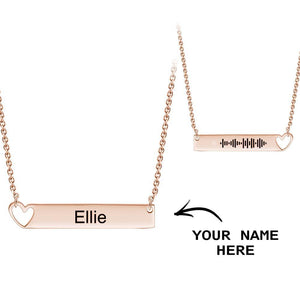 Personalised Engraved Hollow Heart Bar Necklace with Name & Music Code
