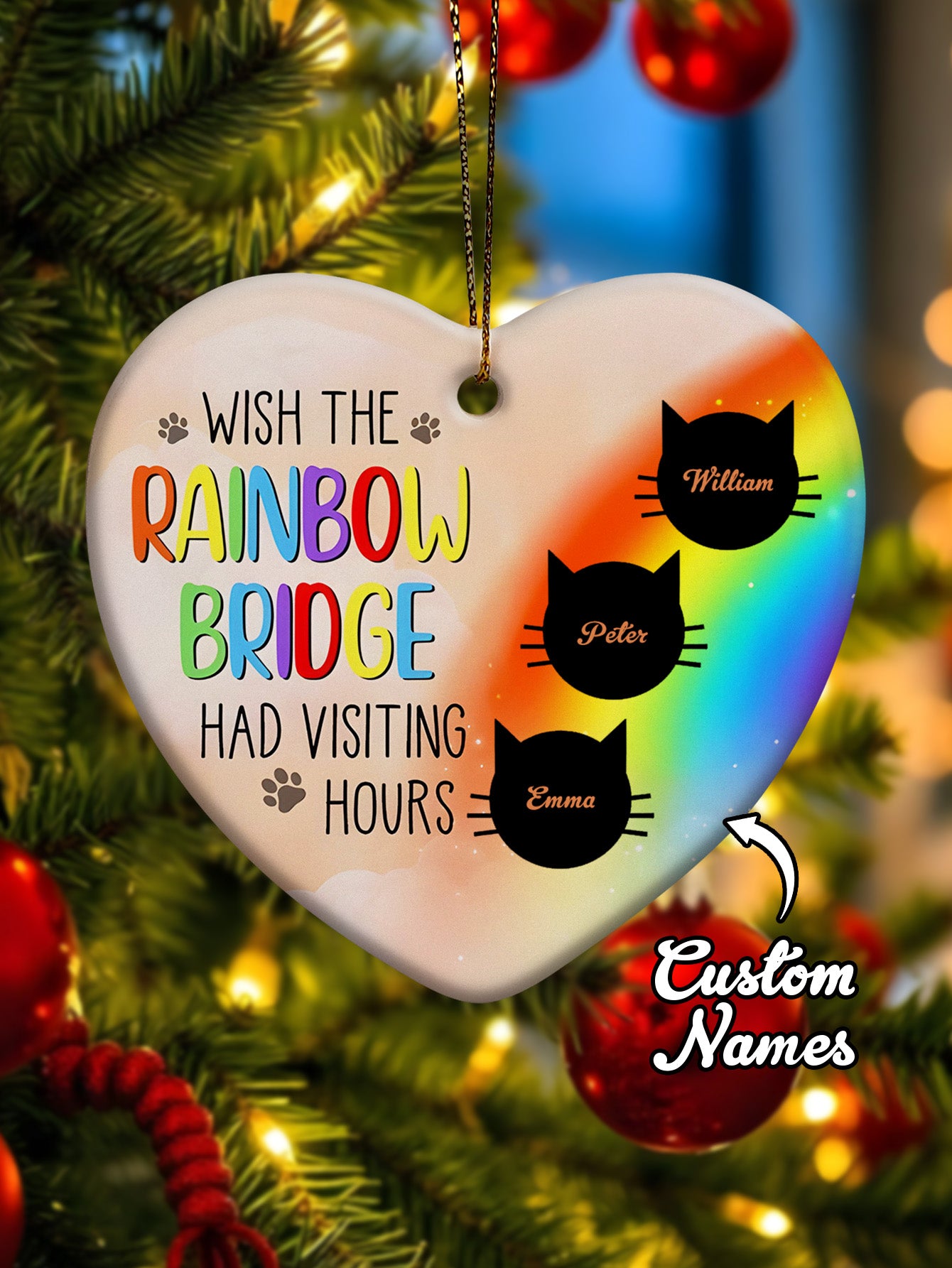 Personalised Heart Cat Memorial Ornament - Rainbow Bridge Visiting Hours Keepsake
