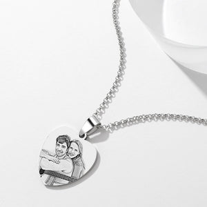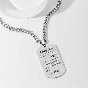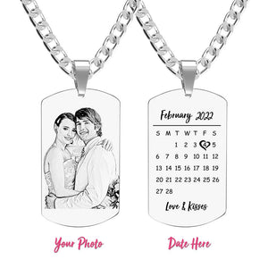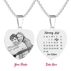 Personalised Heart Photo Calendar Necklace with Engraved Tag - Stainless Steel Gift for Her