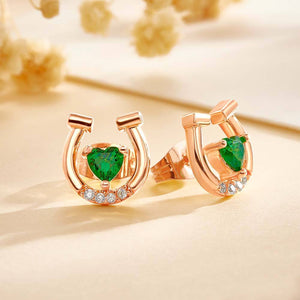 Personalised Horseshoe Stud Earrings with Heart Birthstone & Zircon | Unique Gift for Horse Lovers