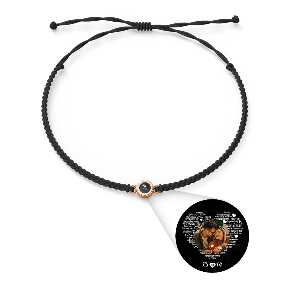 Personalised Photo Projection Charm Bracelet | I Love You in 100 Languages | Custom Birthday Gift
