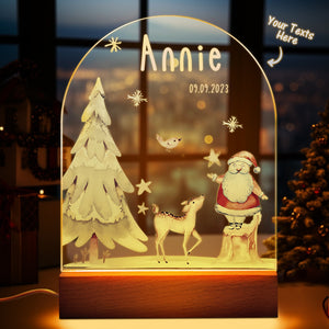 Personalised Santa & Elk Christmas Tree Night Light - Custom Name Desk Lamp