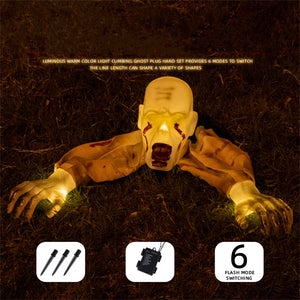 Transform your garden, patio, or Halloween party into a truly haunted experience with our Lighted Zombie Skeleton decoration. This incredibly realistic prop is designed to create the terrifying illusion of a zombie bursting forth from its grave, complete with bloodied eyes and a gaping jaw that glows in the dark. Crafted from durable plastic and cloth, it's the perfect centrepiece for your outdoor Halloween displays or indoor haunted house scenes.