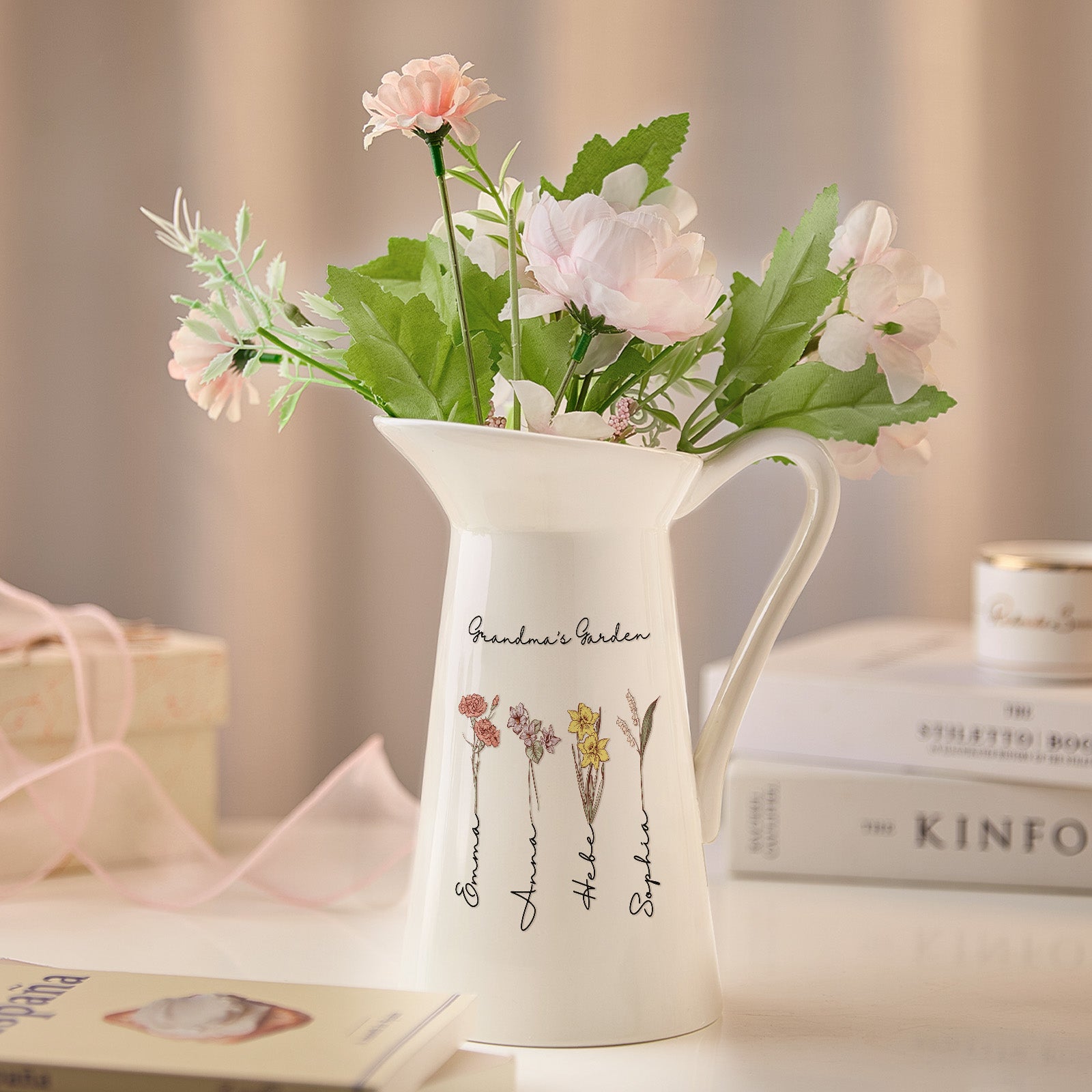 Personalised Birth Flower Ceramic Vase - Custom Home Decor Gift for Mum & Grandma