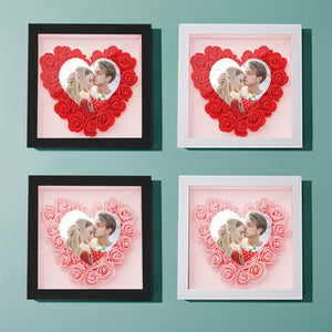 Personalised Heart Flower Shadow Box Frame - Custom Photo Gift