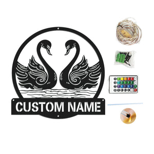 Personalised Swan Couple LED Light Sign - Custom Metal Wall Art Gift