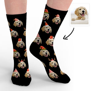 Merry Christmas Funny Design Custom Pet Face Socks