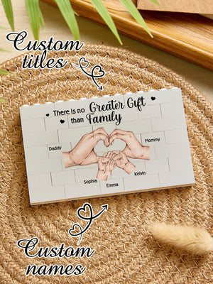 Give your mother the gift that keeps on giving - a beautiful, personalised representation of the family she loves. This custom building brick puzzle isn't just a decorative piece; it's a daily reminder of the love and connections that make your family unique. Order today and create a treasure that will be cherished for years to come.