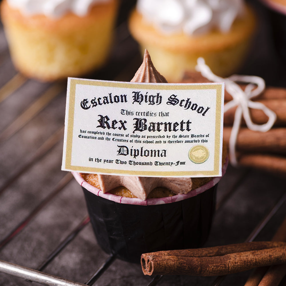 Personalised Edible Graduation Diploma Cupcake Toppers | Custom Cake Decorations