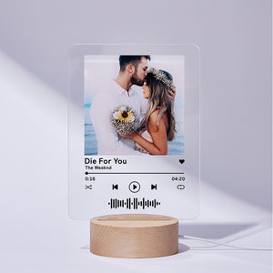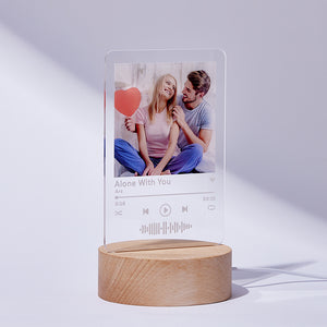 Custom Spotify Code Lamp - Personalised Acrylic Night Light with Wood Base