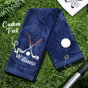 Personalised Embroidered Name Golf Towel with Clip | Gift for Golfers