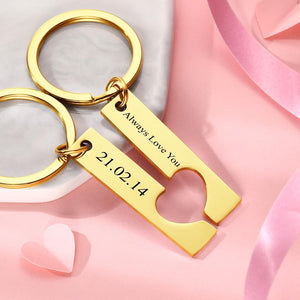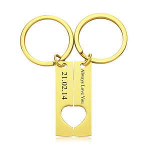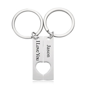 Personalised Engraved Text Stainless Steel Couples Keychains - Customisable Gift