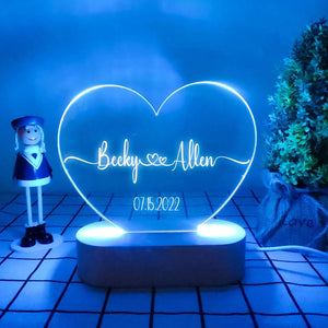 Personalised Heart Shaped Night Light with Custom Name & Date - Acrylic Plaque