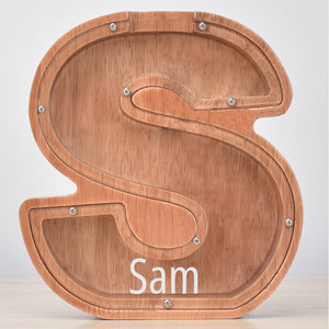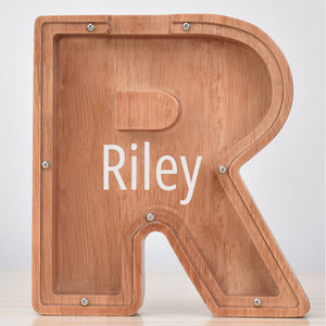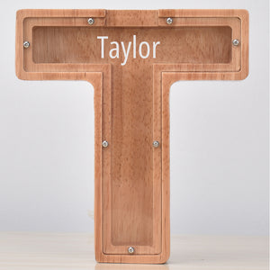 Personalised Oak Wooden Letter Money Box with Engraved Name | Handcrafted Piggy Bank