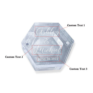 Personalised Acrylic & Walnut Wedding Ring Box - Custom Hexagonal Jewelry Gift