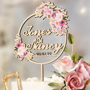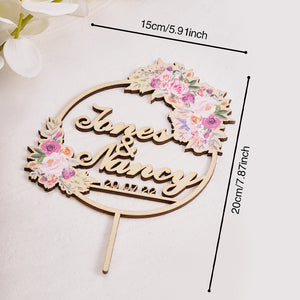 Personalised Wooden Wedding Cake Topper with Custom Names & Dates
