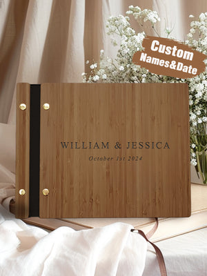 Create a truly unique and memorable wedding memento with our custom engraved wooden guest book. Each page is crafted from high-quality wood and can be personally engraved with your names and wedding date, offering a beautiful rustic charm that will be treasured for years to come.