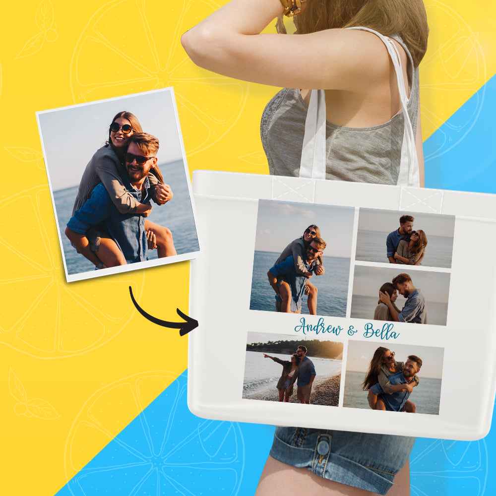 Our custom lettering picture double-sided tote bag offers the perfect way to commemorate your special day with a functional and beautiful keepsake. Designed specifically for weddings without a zipper, this bag allows easy access to your essentials while maintaining an elegant appearance.