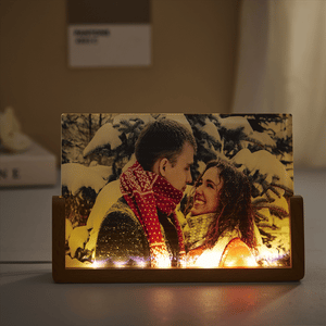 Personalised Photo Night Light - Custom Acrylic Wooden Lamp | Anniversary Gift