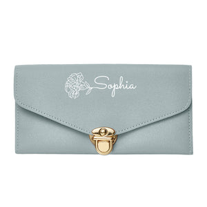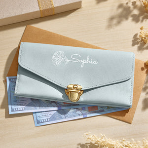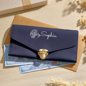 Personalised Birth Flower PU Leather Wallet with Name - Custom Birthday Gift for Her