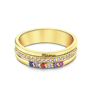 Celebrate the special women in your life with our beautifully crafted personalised birthstone ring. This exquisite piece features customisable birthstones and engraved text, creating a unique sentimental jewellery piece perfect for mothers and grandmothers. Each ring is meticulously crafted to display your family's love and pride in a wearable keepsake.