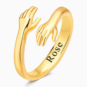 Custom Engraved Name Hug Ring - Personalised Hugging Hands Adjustable Open Ring