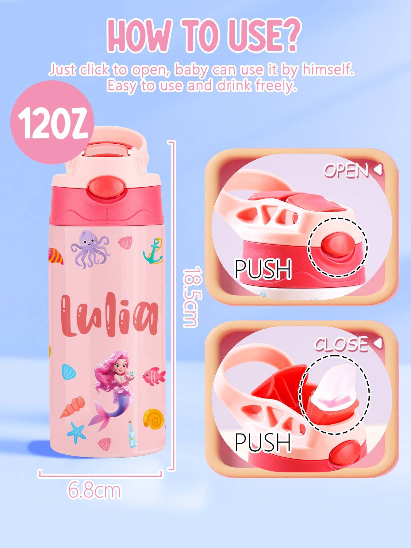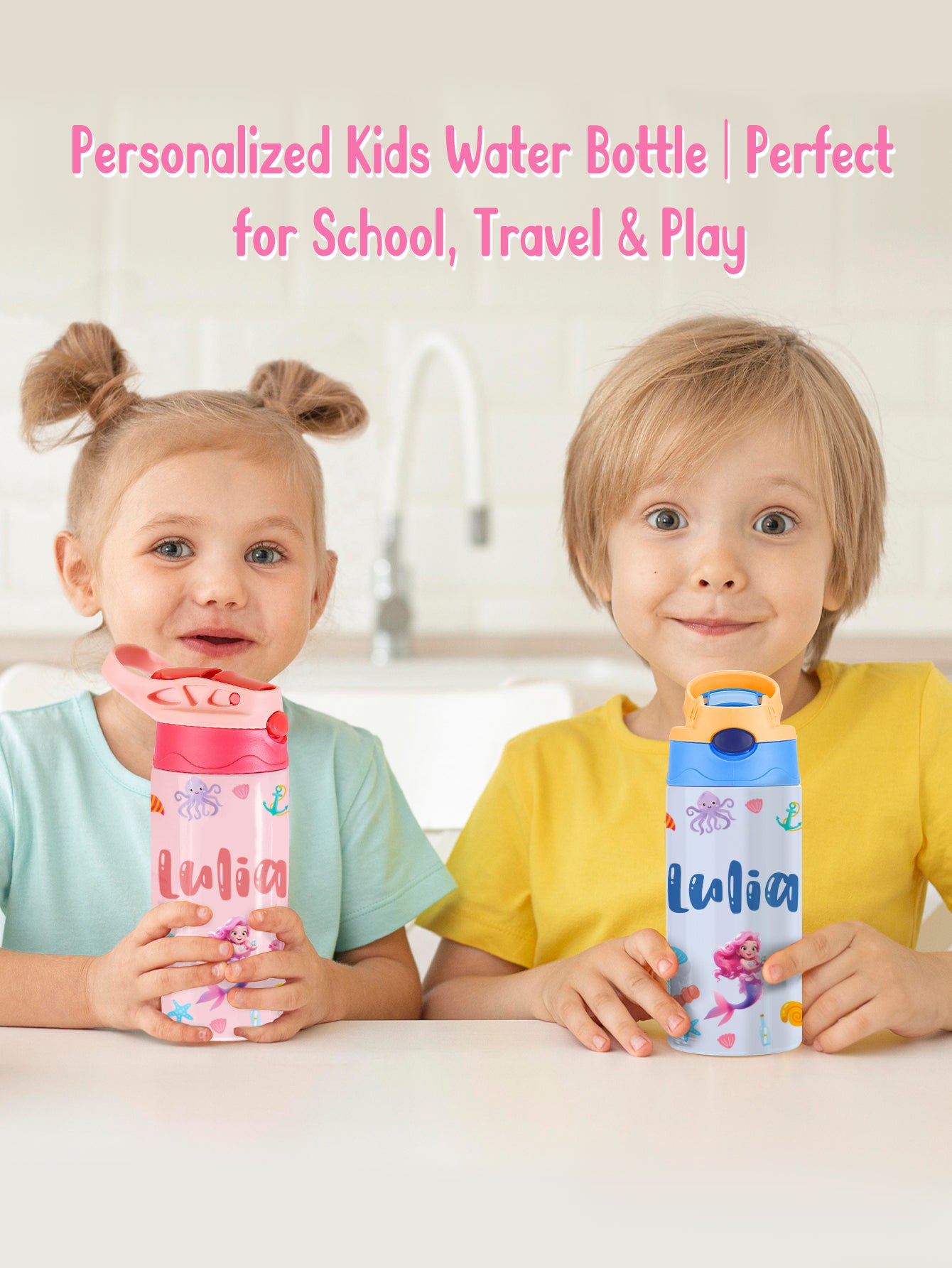 Personalised Mermaid Name Stainless Steel Water Bottle - Children's Day Gift UK