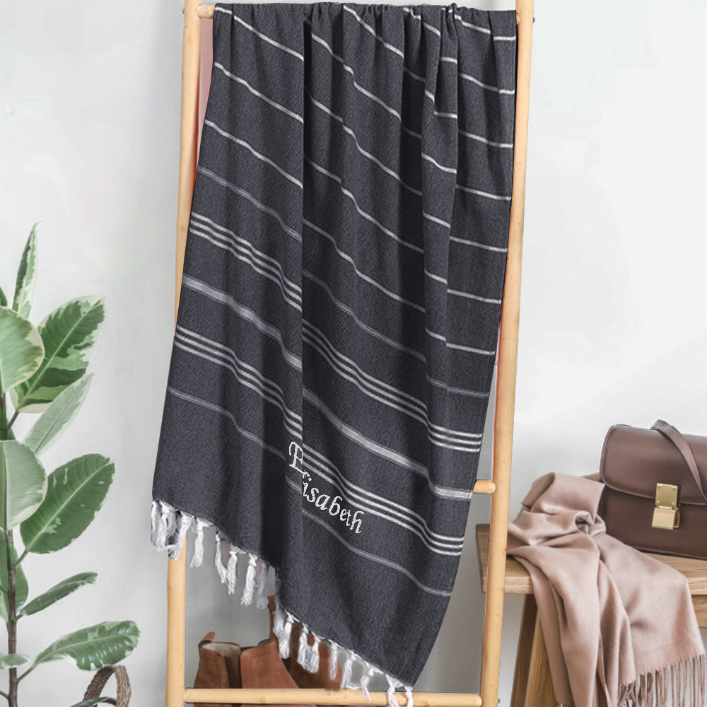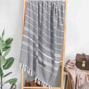 Looking for the perfect, thoughtful gift for your bridesmaids? Our custom engraved Name Fringe beach towel combines practical luxury with heartfelt personalisation. Each towel is meticulously crafted with your chosen names, creating a unique keepsake your bridal party will treasure long after the wedding day.