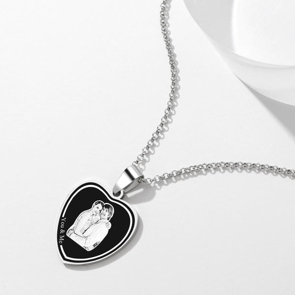 Personalised Photo Engraved Heart Necklace - Custom Couple Gift