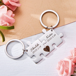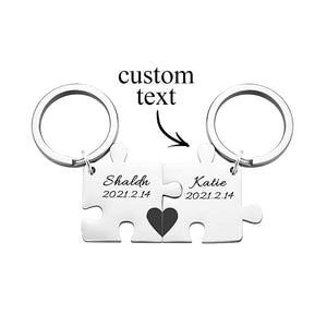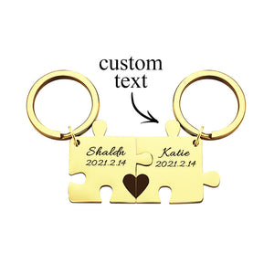 Personalised Engraved Couple Puzzle Keychain Set | Valentine's & Wedding Gift