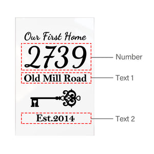 Personalised 'Our First Home' Acrylic Plaque with House Number - Custom Desk Decoration