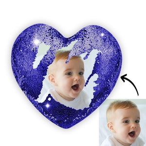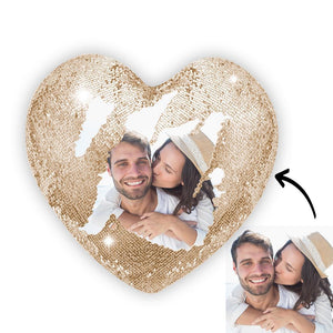 Custom Heart Magic Sequin Pillow with Photo - 9 Colors