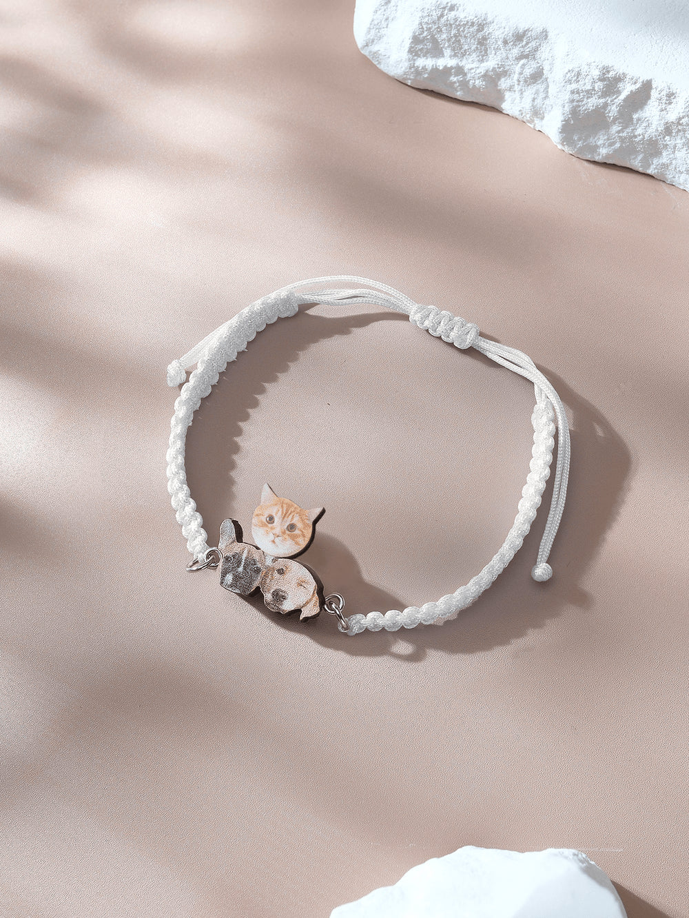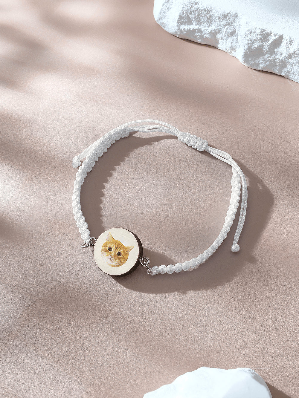 Celebrate the unique bond you share with your beloved pet with our exquisitely crafted personalised pet portrait bracelet. This adjustable, braided design is more than just jewellery; it's a wearable memory, a constant companion that keeps your furry friend close throughout your day. Each bracelet is meticulously handcrafted to capture the character and charm of your pet, making it a profoundly sentimental and unique gift for any pet lover.