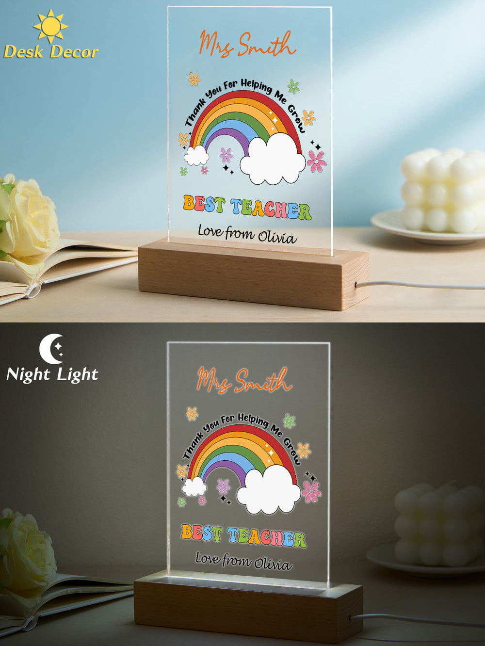 Whether you're celebrating Teacher's Day, welcoming students back to school, or simply want to show appreciation to someone special, this custom night light serves as a meaningful keepsake that will be cherished for years to come.